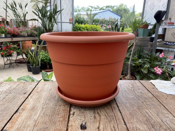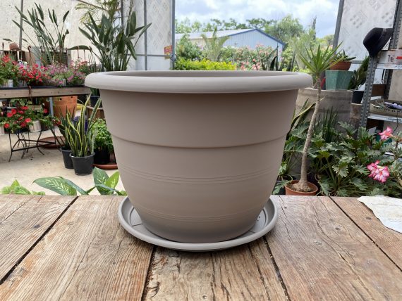 עציץ עגול גבוה קוטר 40 ס"מ וגובה 17 ס"מ.